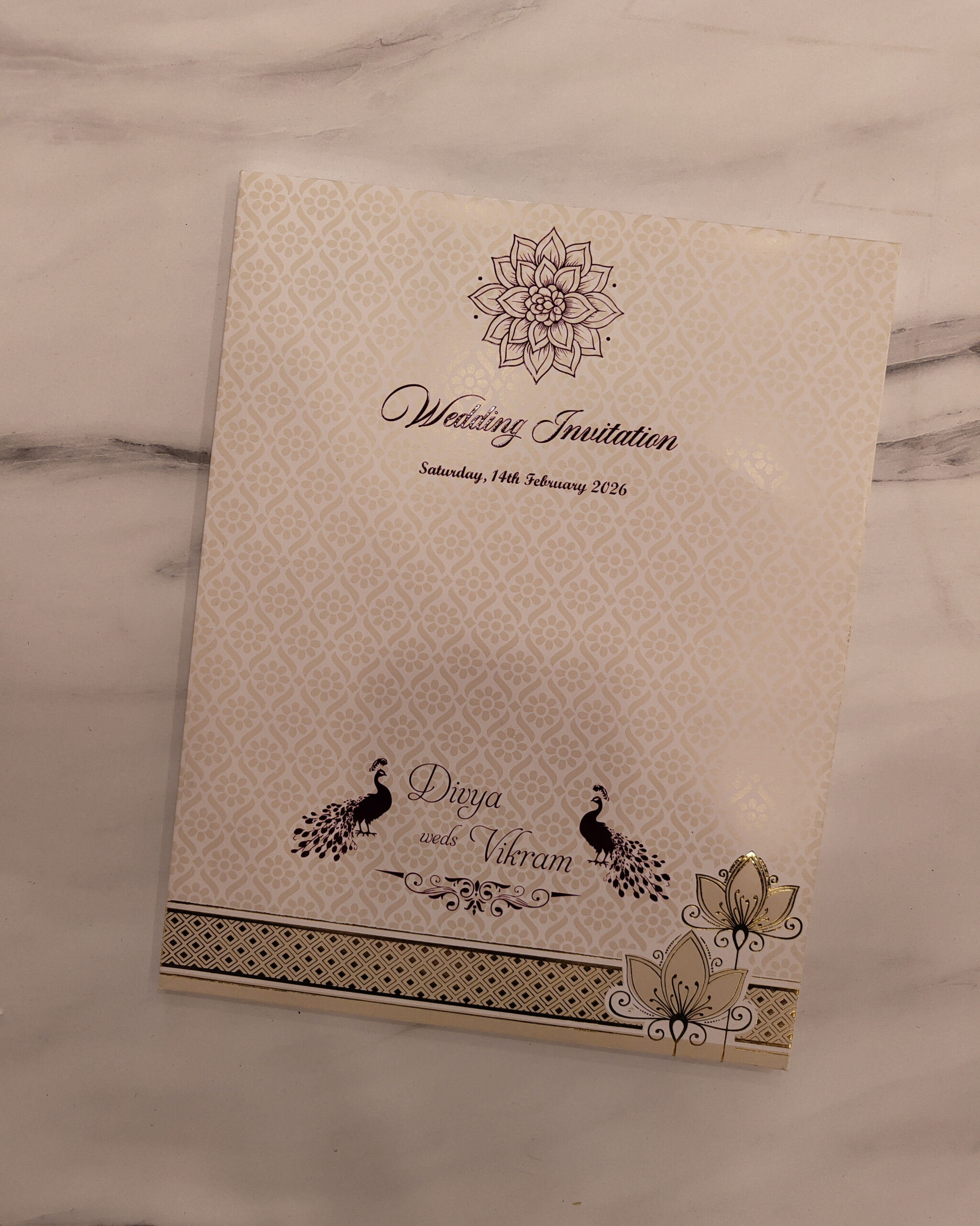 Elevate your wedding announcement with this Cream & Gold Embossed Wedding Card, crafted with rich textures and refined detailing. Featuring a premium acrylic nameplate and a customisable emblem, this invitation exudes timeless elegance. Paired with a perfectly matching envelope, it’s an ideal choice for couples seeking a luxurious and sophisticated wedding invitation.