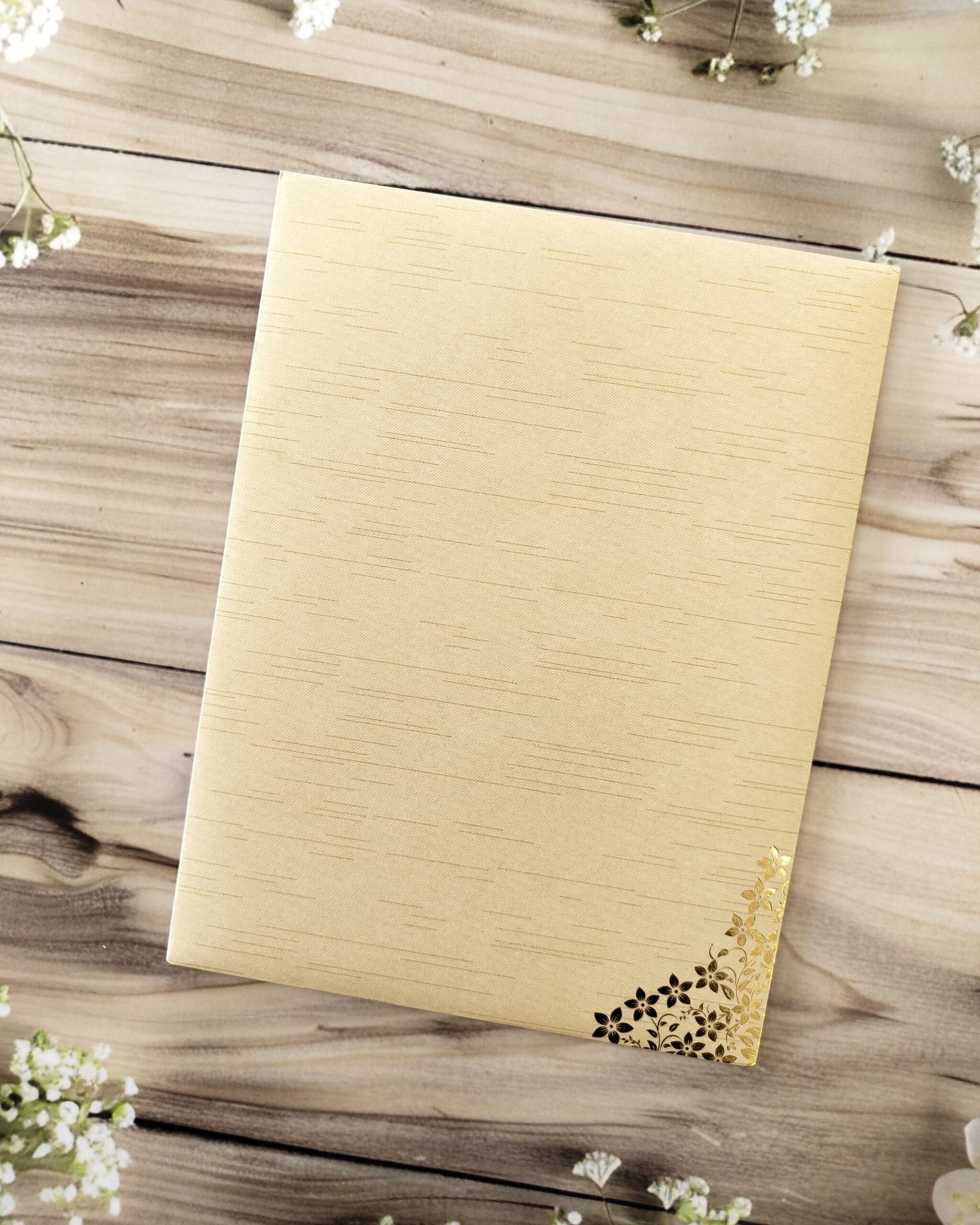 Celebrate your special day with this Premium Cream Gold-Foiled Floral Wedding Card, featuring a sophisticated cream base with luxurious gold foil and intricate floral designs. The card includes a customizable emblem to add a personal touch and comes with a matching envelope for a complete premium invitation set. Perfect for weddings, engagements, and festive ceremonies, this card blends elegance, luxury, and personalization seamlessly.