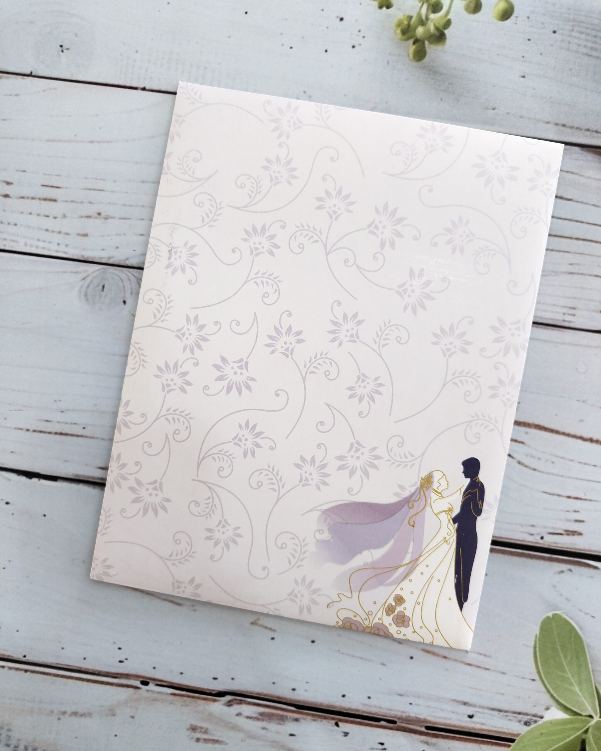 Celebrate your love story with this lavender couple wedding card, beautifully designed with soft romantic tones and highlighted by an elegant acrylic nameplate. Paired with a matching envelope, this premium invitation offers a refined, modern, and heartfelt presentation—perfect for romantic, pastel-themed, or contemporary weddings.