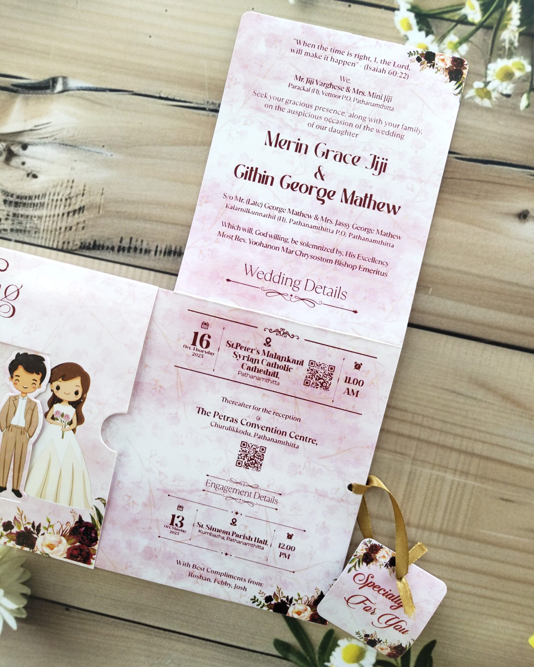 Light Pink Sliding Christian Wedding Invitation Card