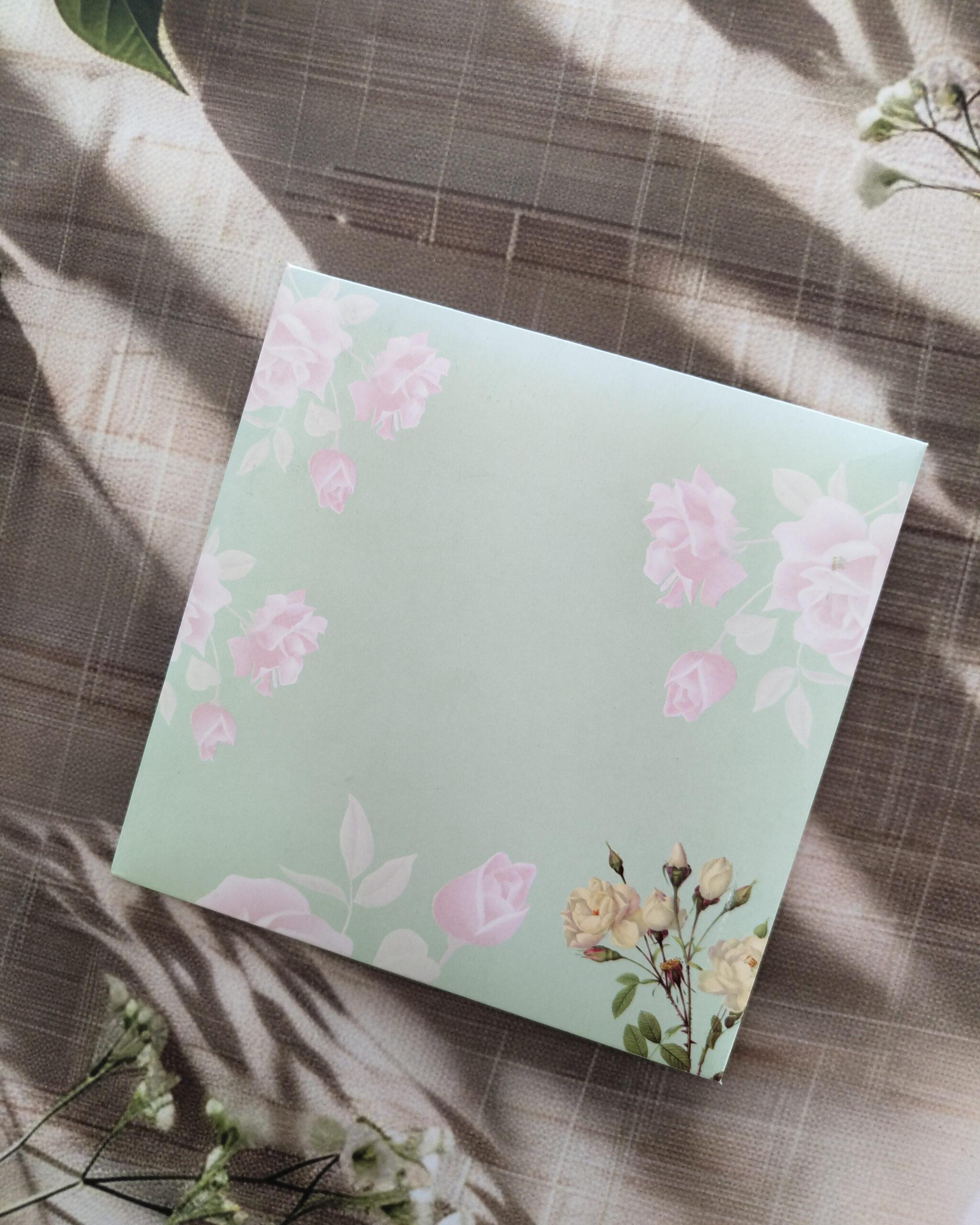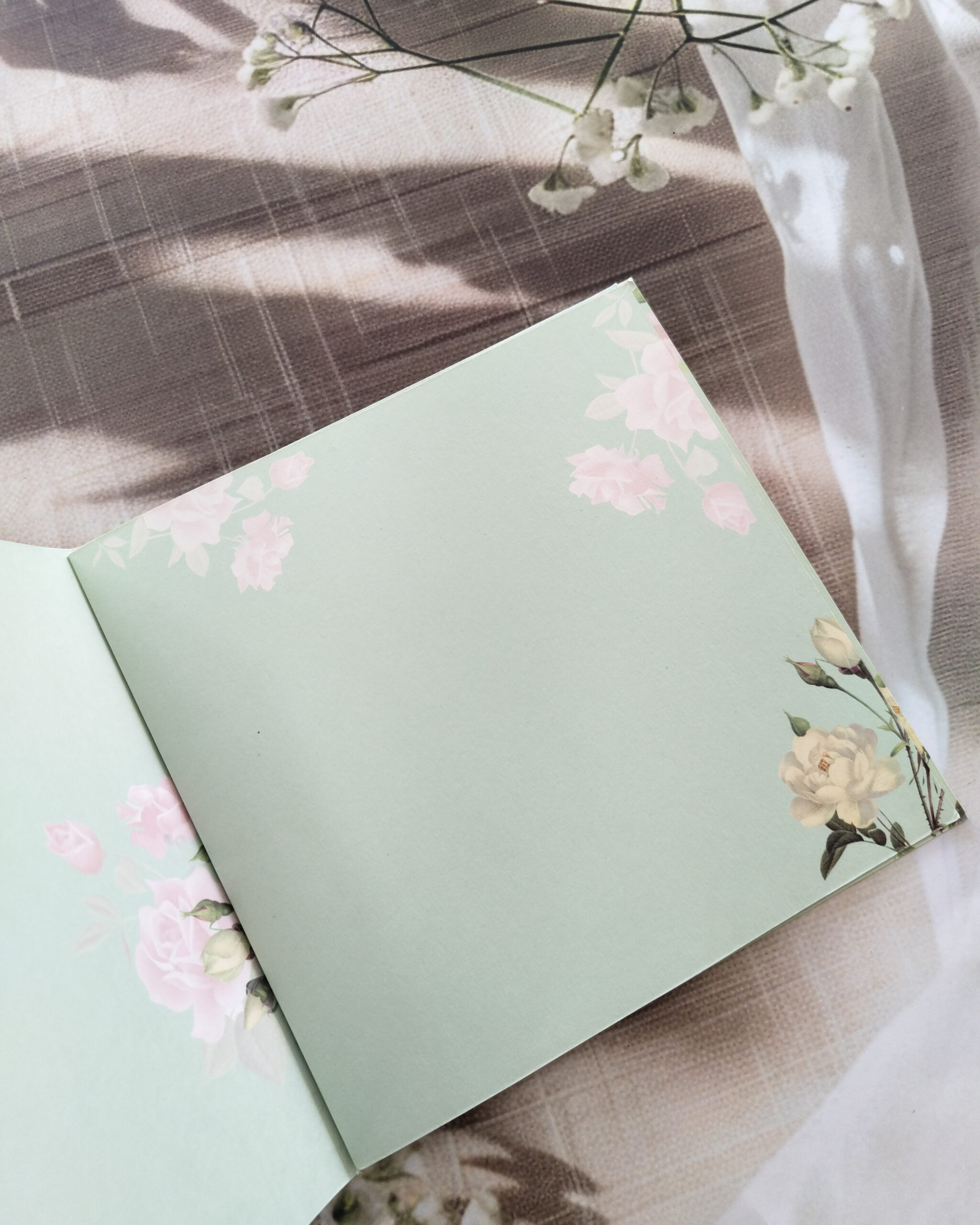 Premium Light Green Floral Border Square Wedding Card
